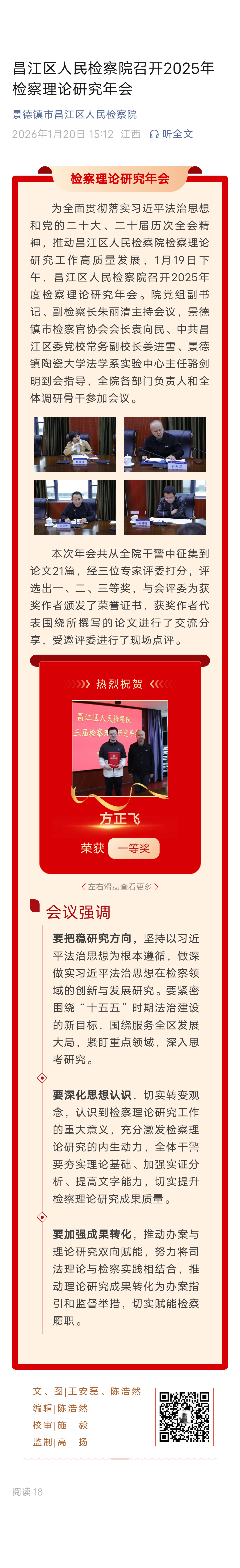 昌江区人民检察院召开2025年检察理论研究年会