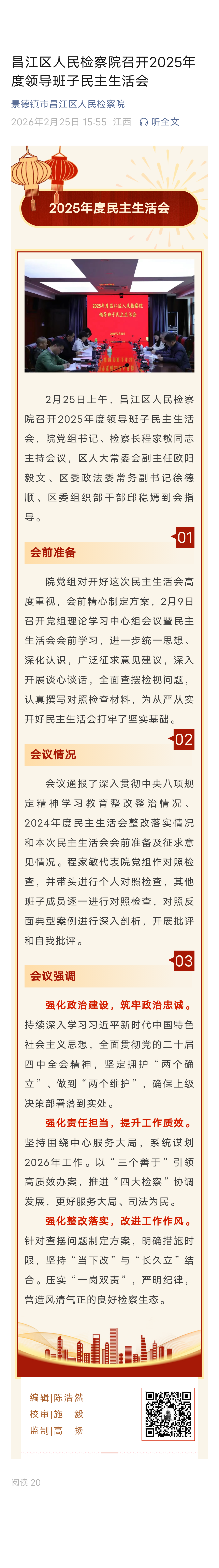 昌江区人民检察院召开2025年度领导班子民主生活会